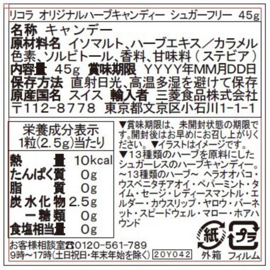 リコラ利口樂 オリジナルハーブキャンディー 45g【在庫限り】