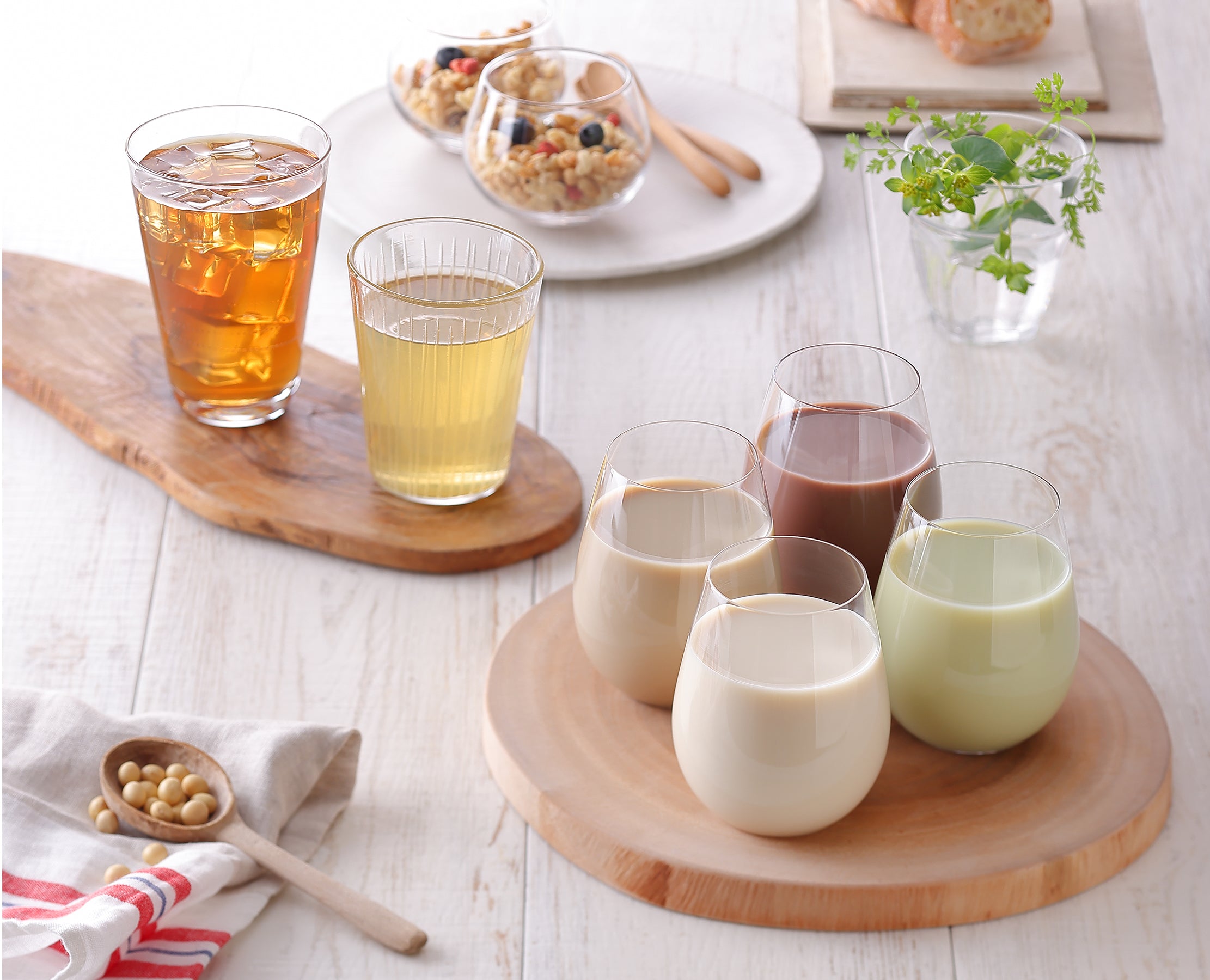 Morning ビタソイ豆乳で時間がない朝も、ビタソイ豆乳1本で必要な栄養分を補給!◎Office 忙しい仕事の合間にビタレモンティーでほっと一息◎Holiday 週末、頑張った自分にご褒美。クセになる麦芽豆乳を楽しむ。